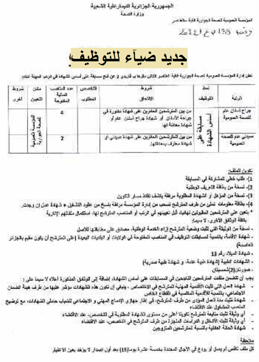 اعلان عن توظيف بالمؤسسة العمومية للصحة الجوارية قاريدي 2 بولاية الجزائر