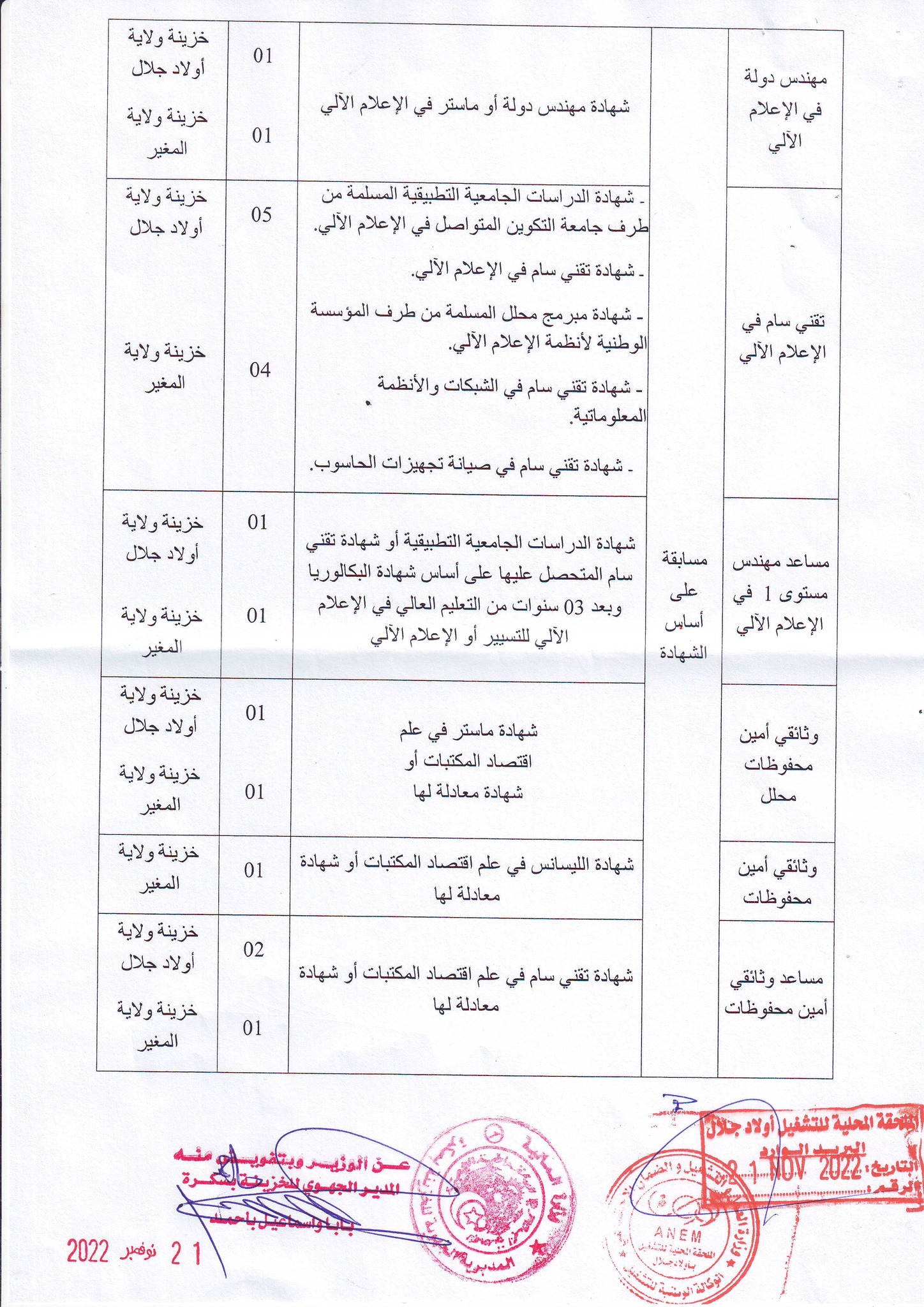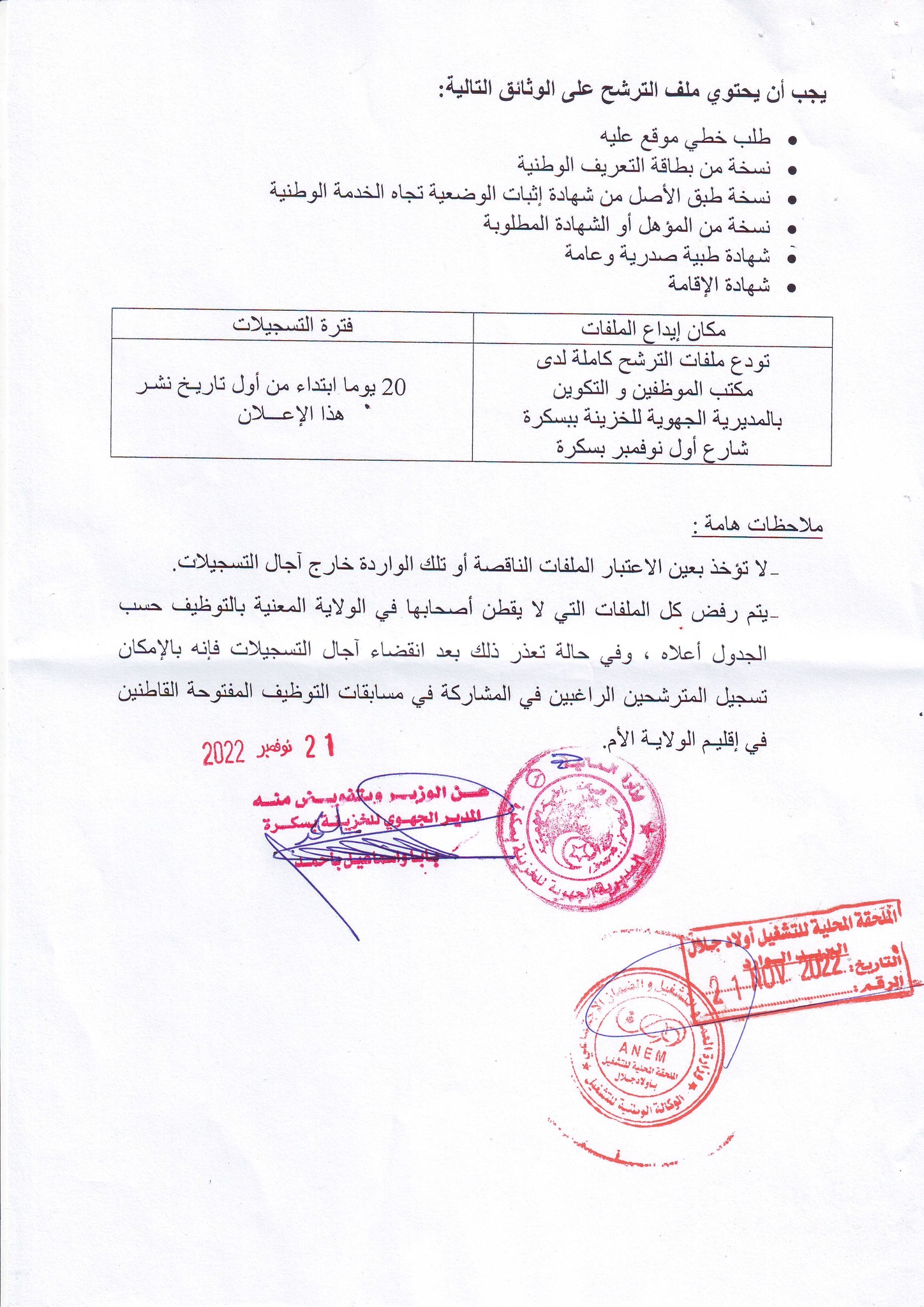 اعلان توظيف بولاية أولاد جلال و ولاية المغير