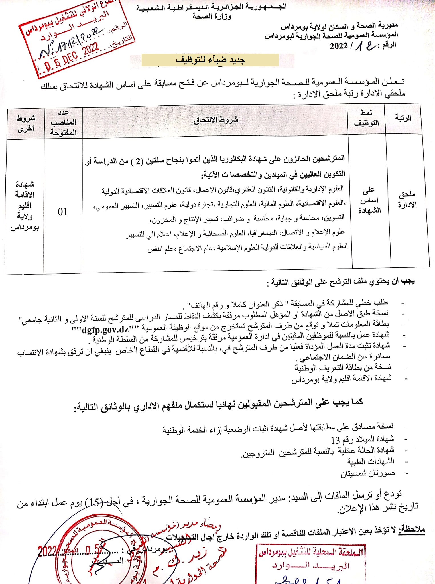 اعلان عن توظيف بالمؤسسة العمومية للصحة الجوارية بولاية بومرداس