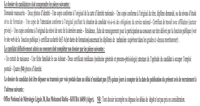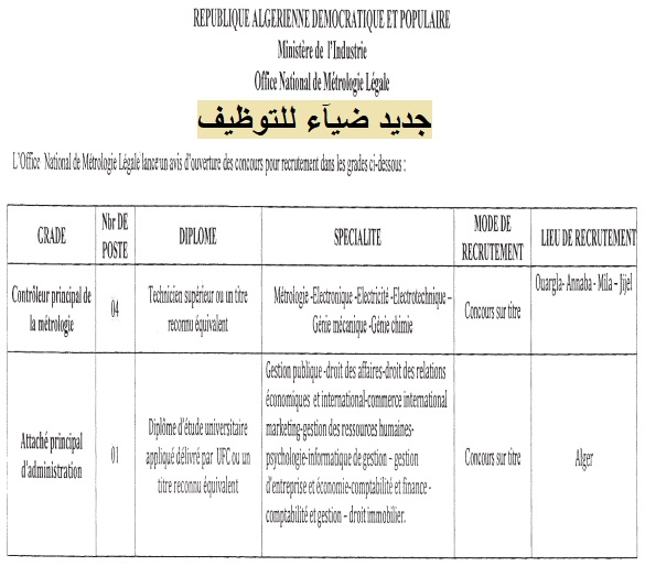 اعلان عن توظيف بالديوان الوطني للقياسات القانونية بالقبة بولاية الجزائر