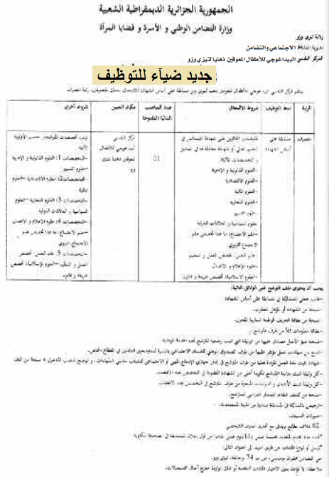 اعلان عن توظيف بالمركز النفسي البيداغوجي للأطفال المعوقين ذهنيا بولاية تيزي وزو