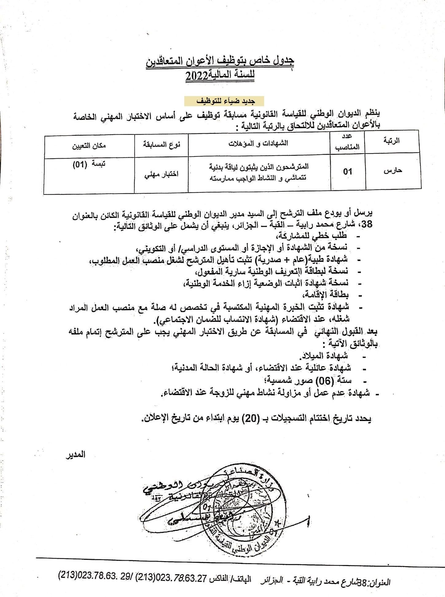 اعلان توظيف بولاية تبسة