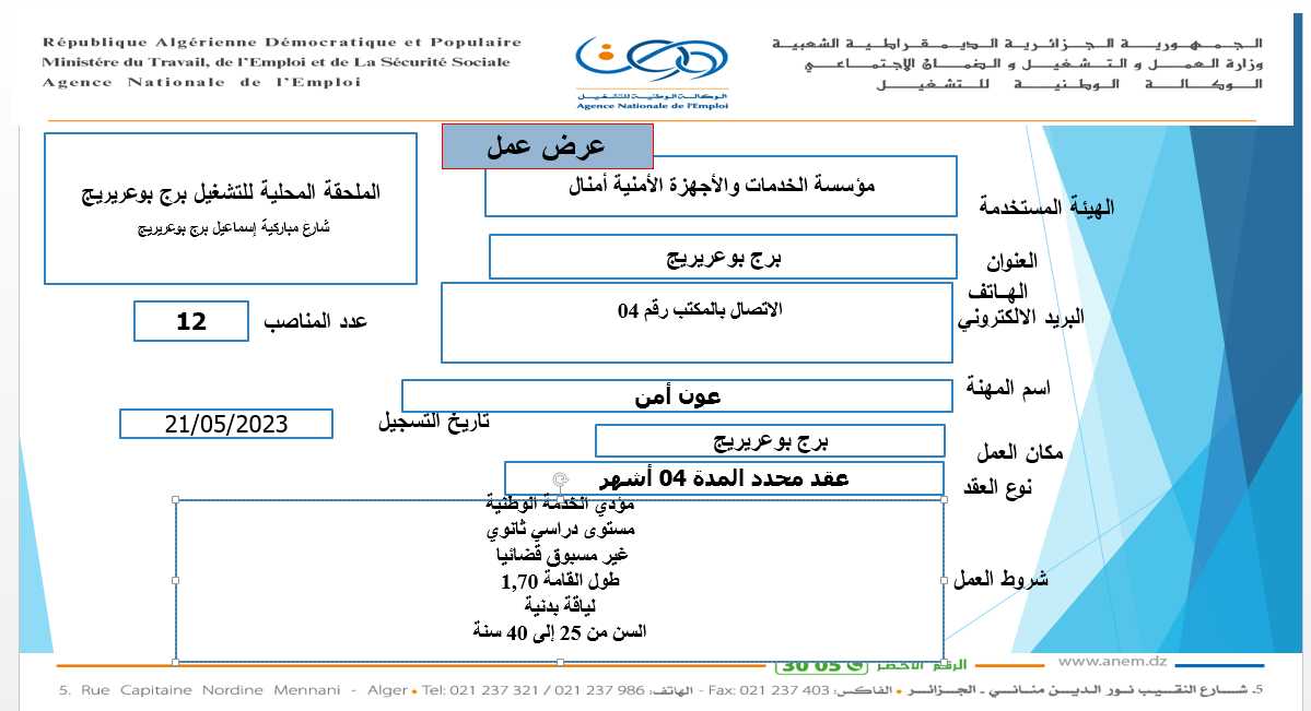 عروض عمل بالفرع الولائي للتشغيل لولاية برج بوعريريج